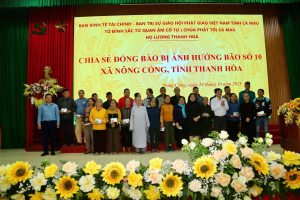 Đoàn thiện nguyện Ban trị sự Hội đồng Giáo hội Phật giáo Cà Mau phối hợp Hội đồng họ Lương Thanh Hóa trao quà hỗ trợ bà con và học sinh họ Lương vùng lũ